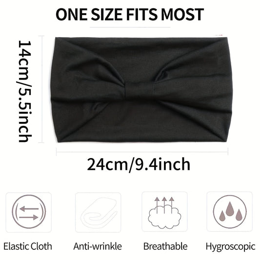 Women's Wide Headband, Solid Color Polyester, All-Season Stretchy Hair Wrap, Bohemian Thick Sports Yoga Turban Headband Accessory, Colorful Print Knotted Elastic Yoga Headband