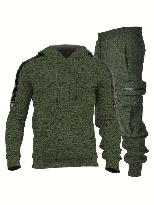 2pcs Sportswear, Men's Mid Stretch Hoodie & Cargo Pants for Outdoor Spring Fall Winter