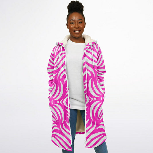 Hot Pink & White Boho Swirl Hooded Zipper Cloak Wrap | Festival Cloak with Abstract Boho Design