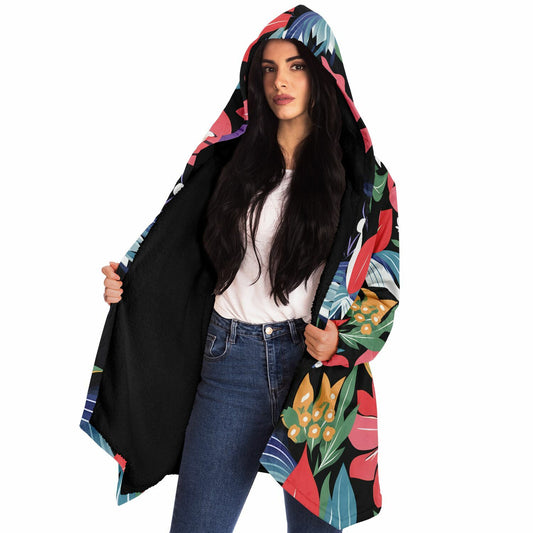 Wearable Art: Vibrant Hummingbird & Floral Microfleece Cloak” 🎨✨
