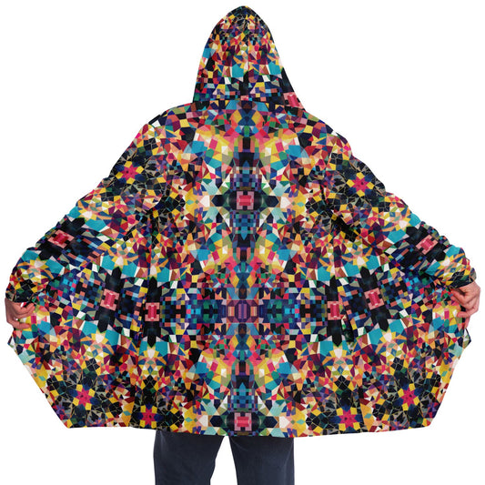 Zipper Cloak – Vibrant Kaleidoscope Mosaic Microfleece Wrap, Colorful Boho Festival Poncho