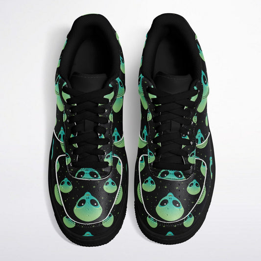 Core Top Shoes, Alien Skull Sneakers, Green & Blue Skull Low Tops, Unique Sci-Fi Streetwear Custom Design