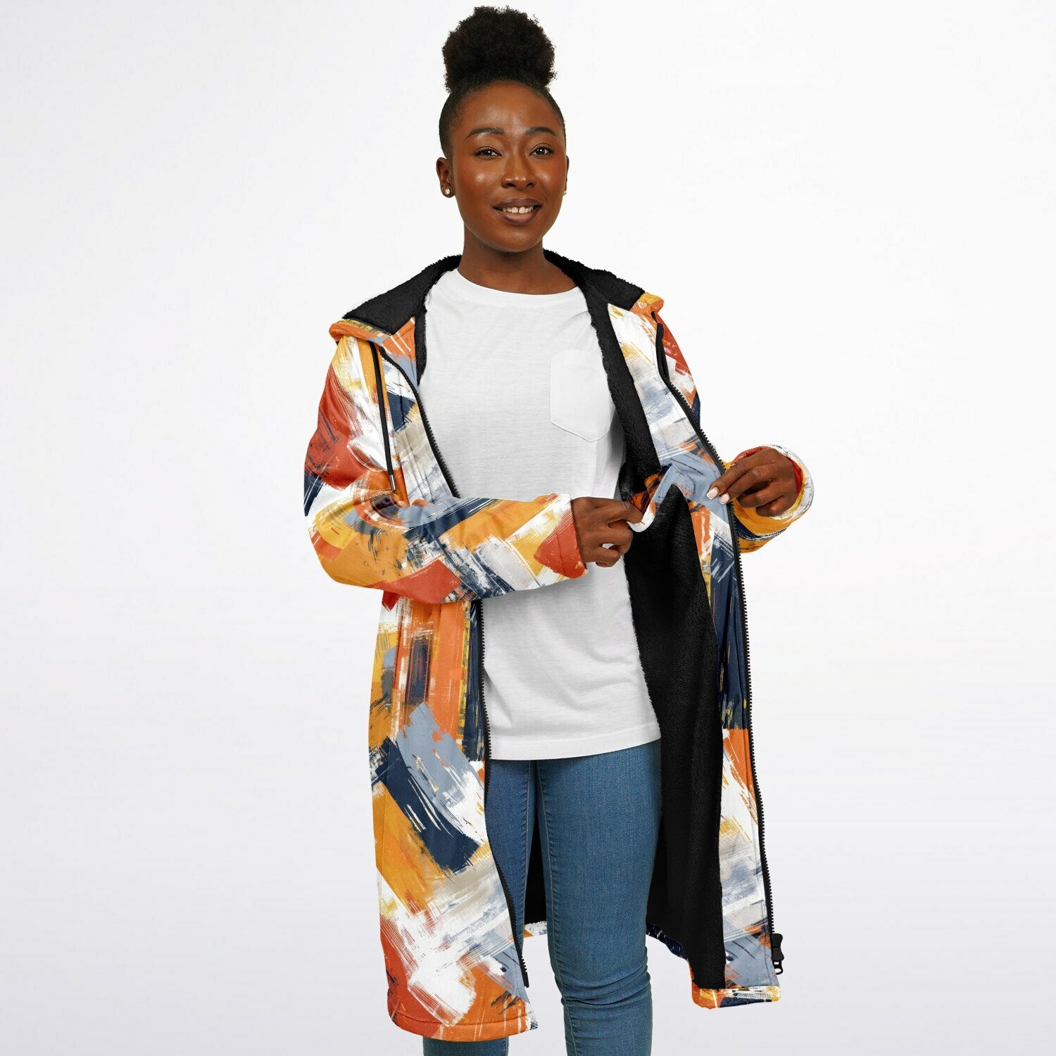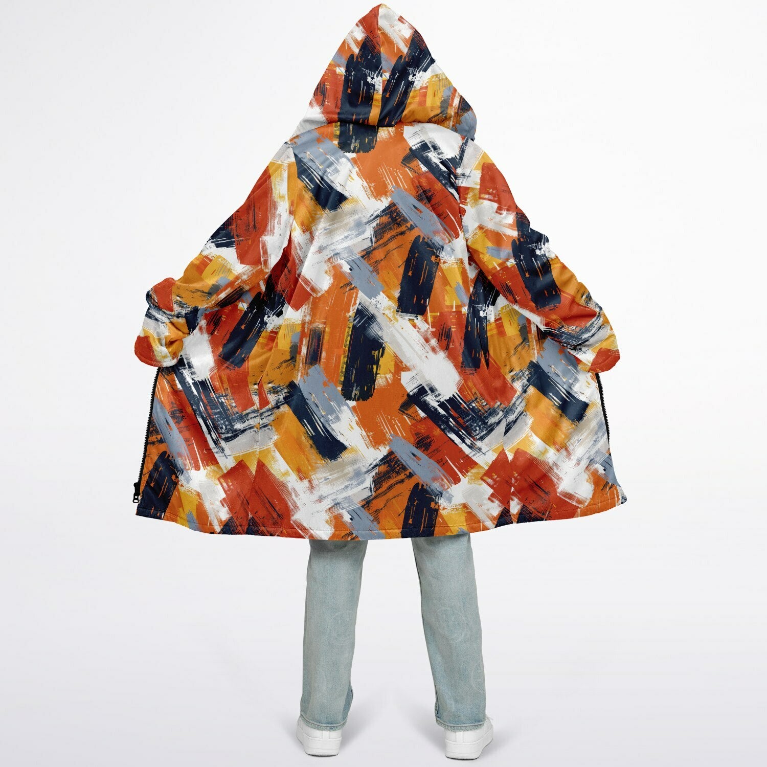fall hoodie coat, winter hoodie coat, abstract hoodie, artistic hoodie coat, grunge hoodie, brushstroke print hoodie, modern streetwear coat, contemporary art fashion, cozy oversized coat, vibrant hoodie jacket, bold statement outerwear