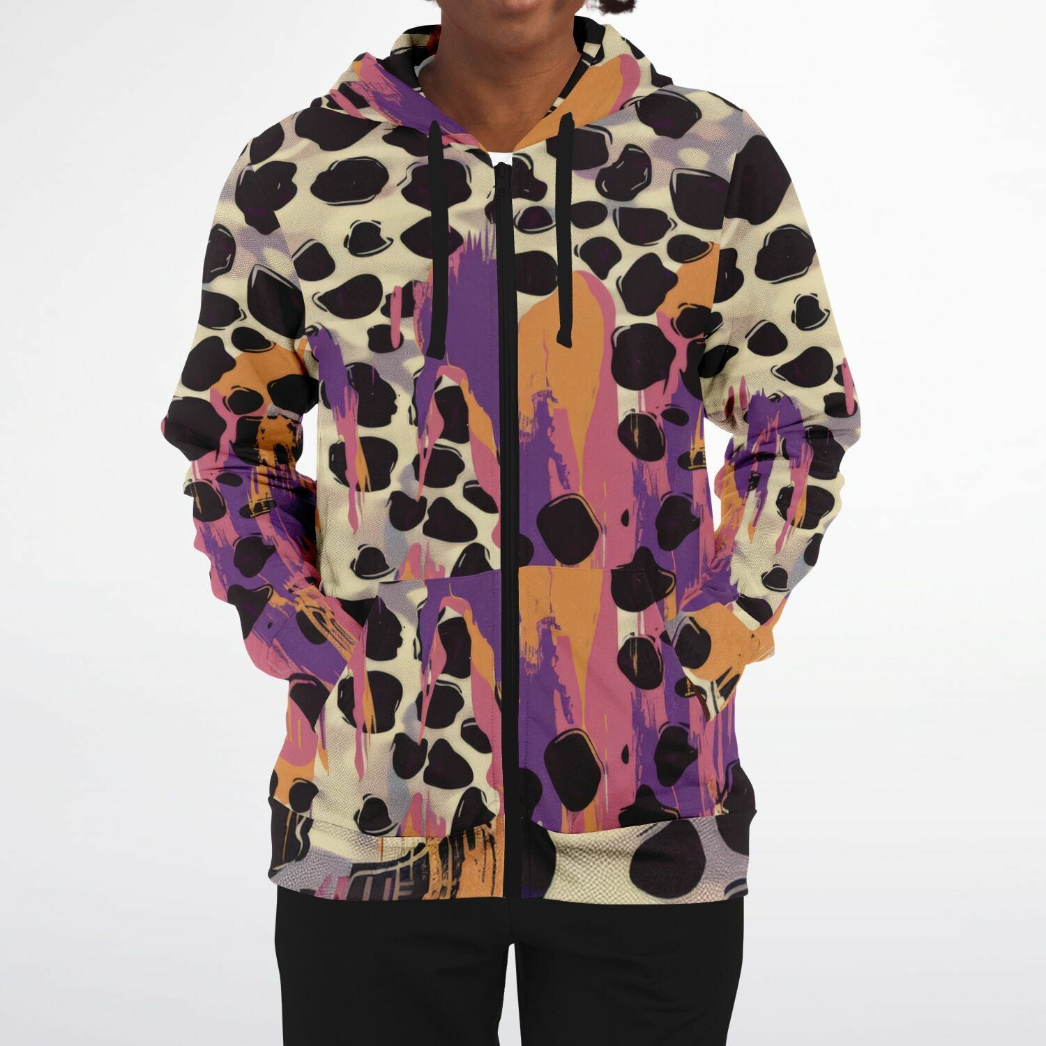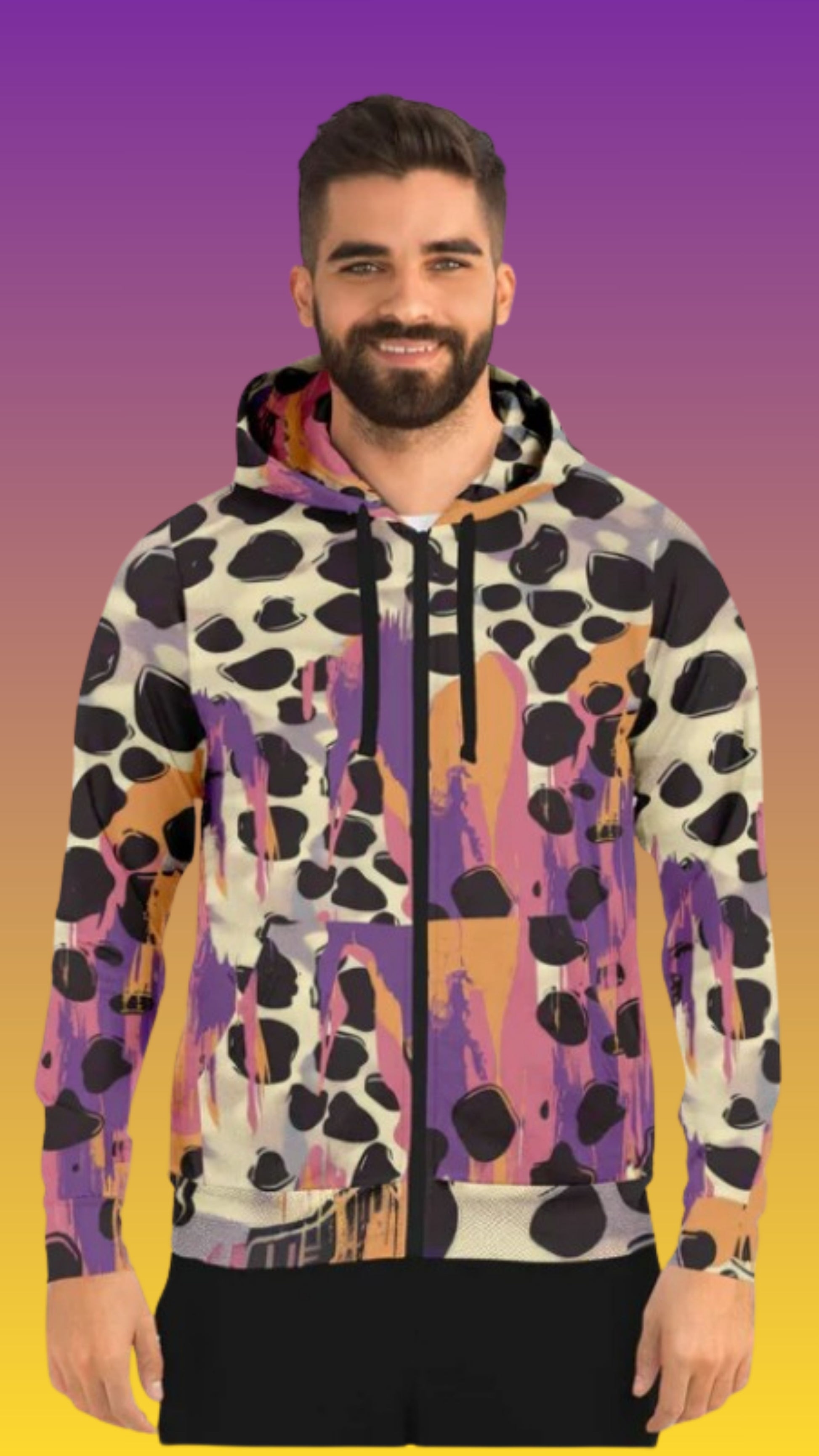 This unisex zip-up hoodie features a soft and durable fabric that has a cotton feel to it. The brushed fleece on the inside will make this your most comfy zip-up hoodie ever! It also comes with a visible nylon zipper front closure. Each panel is individually printed, cut and sewn to ensure a flawless graphic with no imperfections.