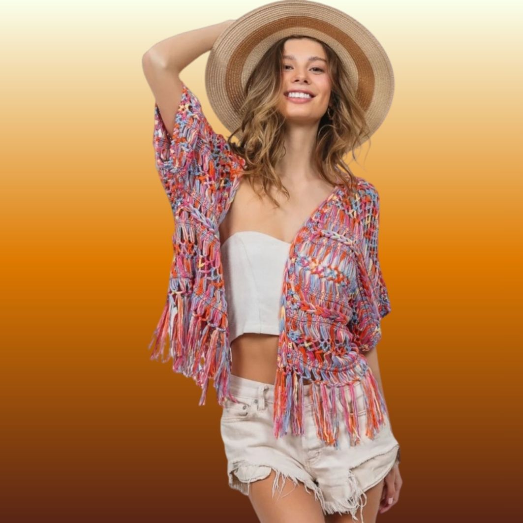 Open Front Fringed Crop Knit Cardigan