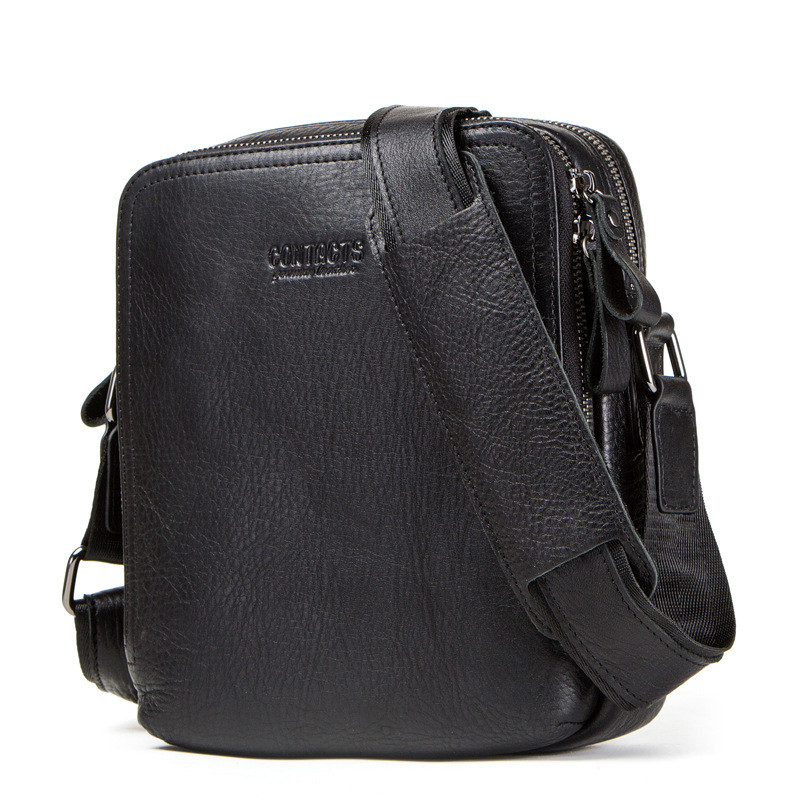Elevate your style with our Black Angel Retro Men's Shoulder Bag, crafted from premium first layer cowhide leather that exudes sophistication and durability. This small-sized messenger bag combines functionality with a vintage flair, perfect for those who appreciate classic design.