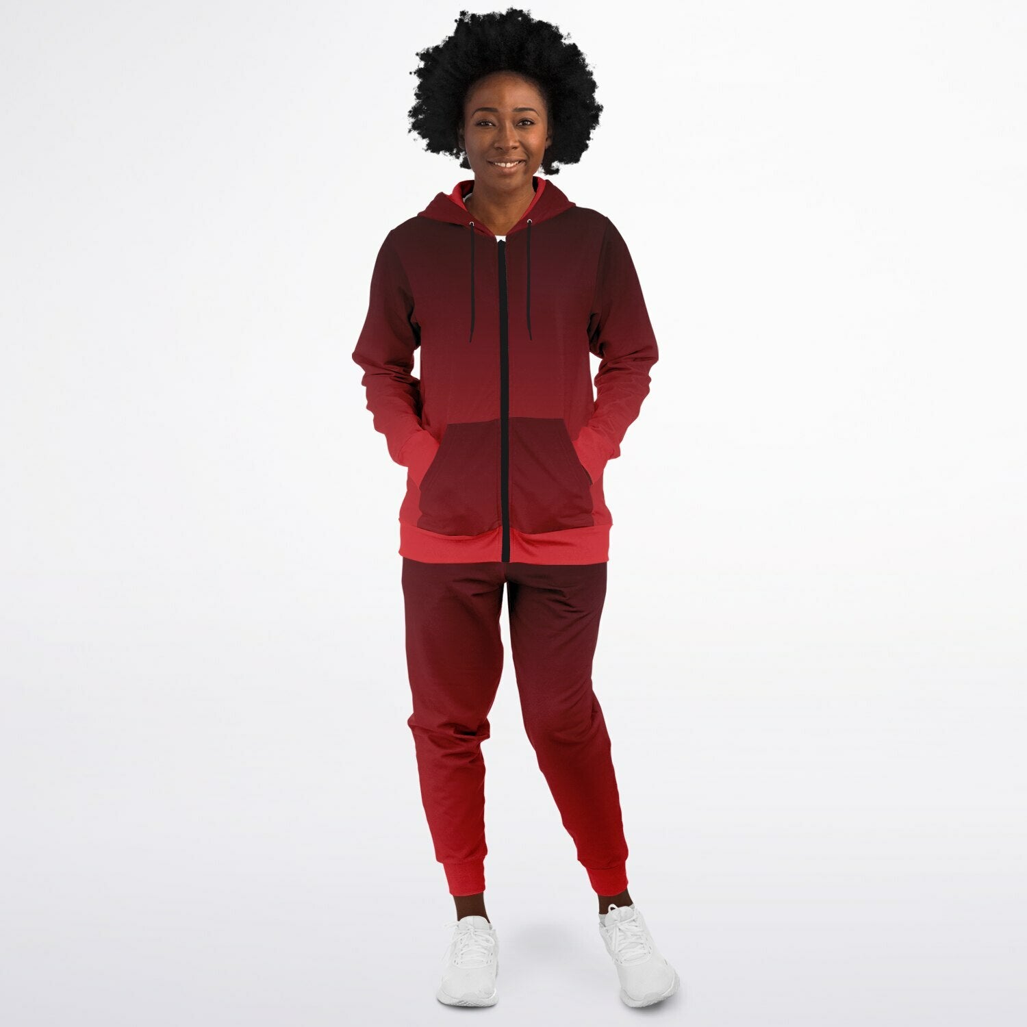 Black Red Ombre Hoodie Jogger Sweatsuit Set, Tie Dye Lounge Zip Hooded Sweatshirt Sweatpants Women Men Cotton Matching Plus Size Sweats