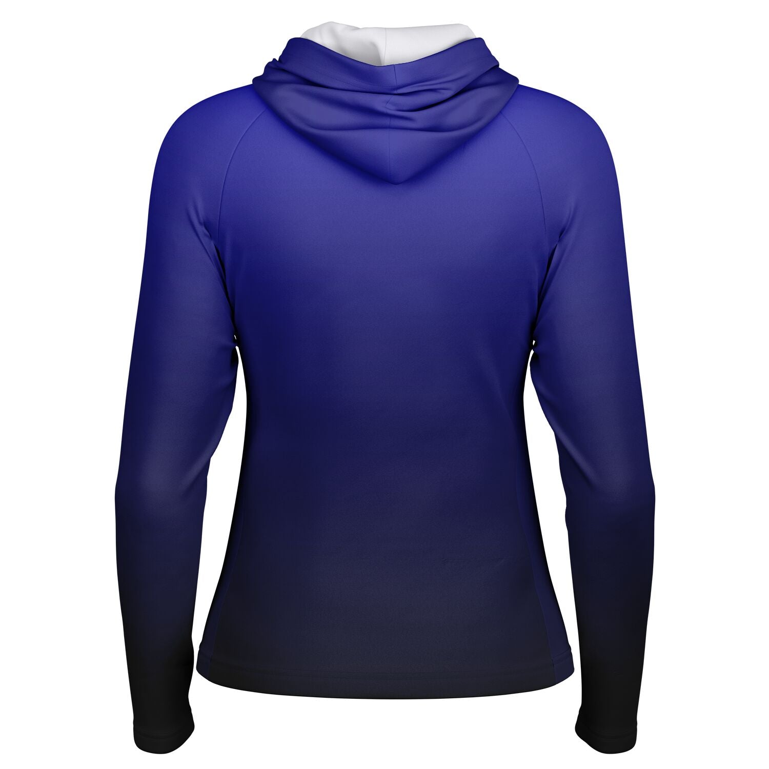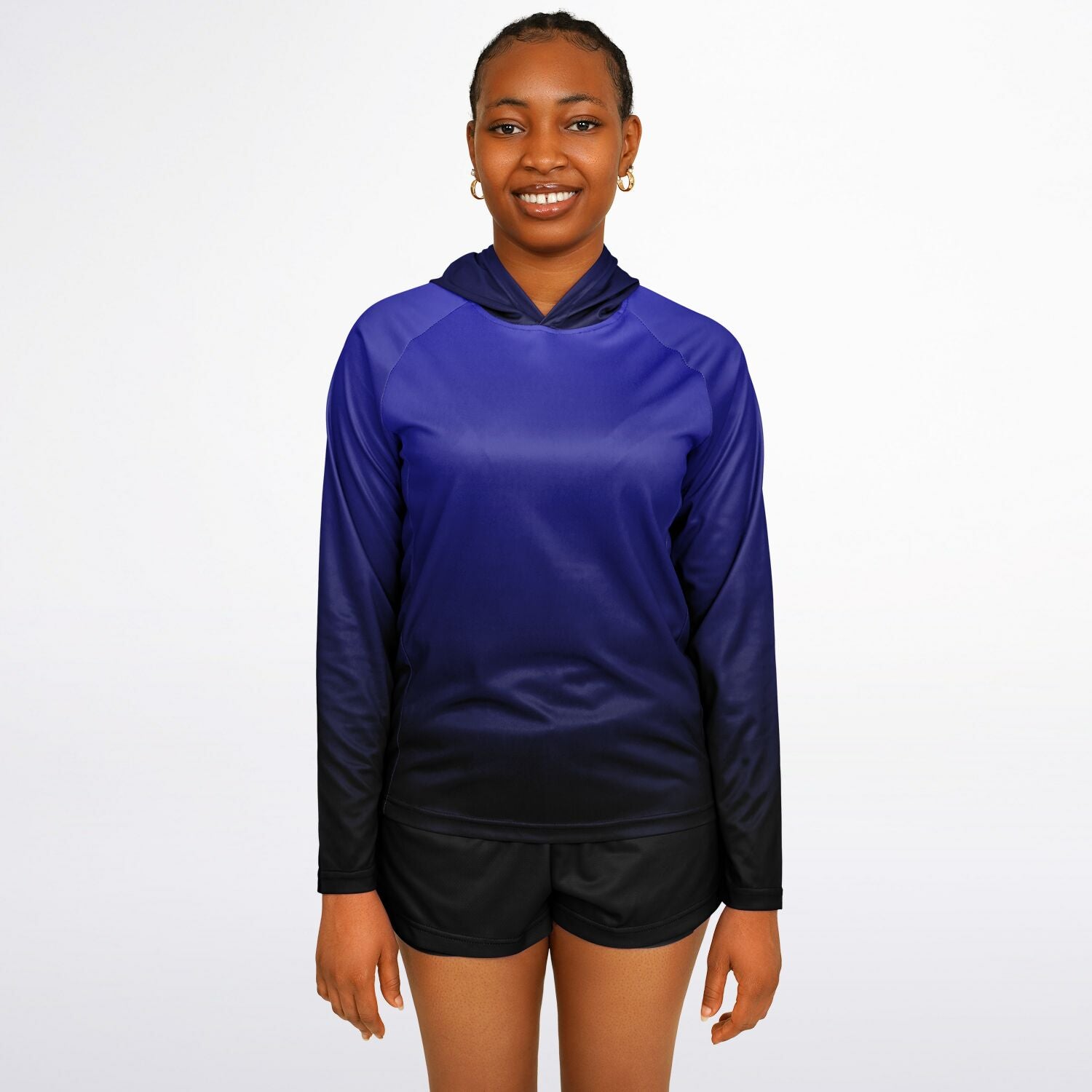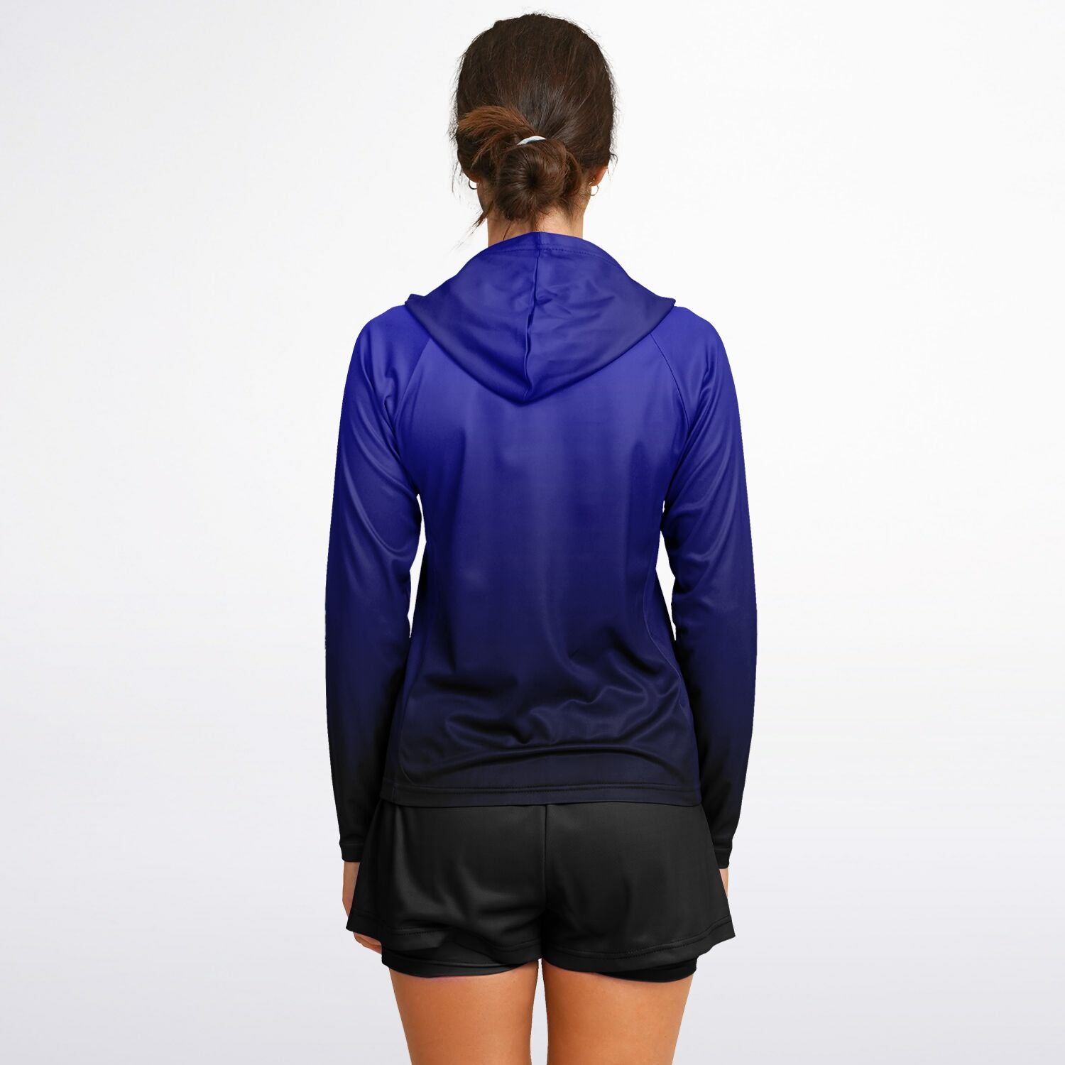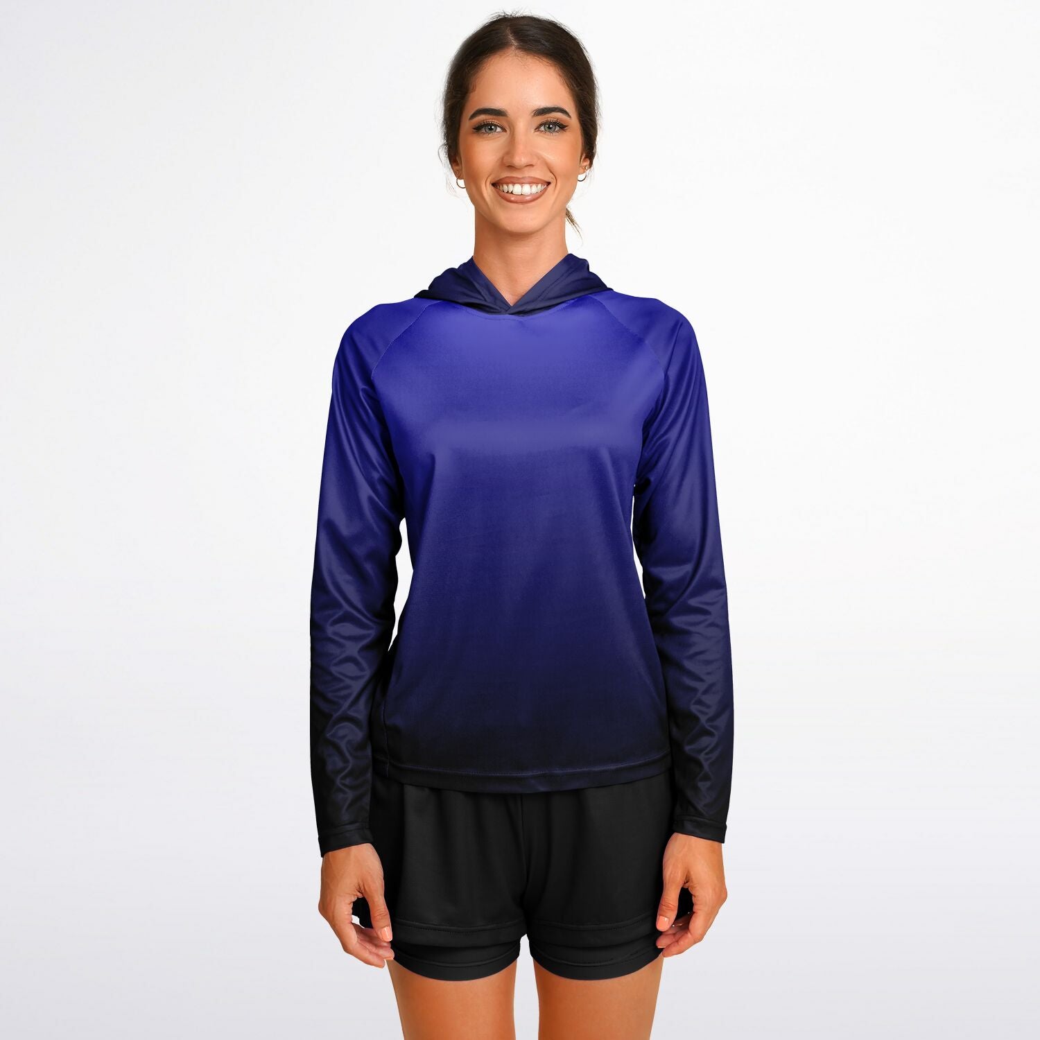 Blue & Black Gradient Women's Long Sleeve Hooded Performance Shirt
