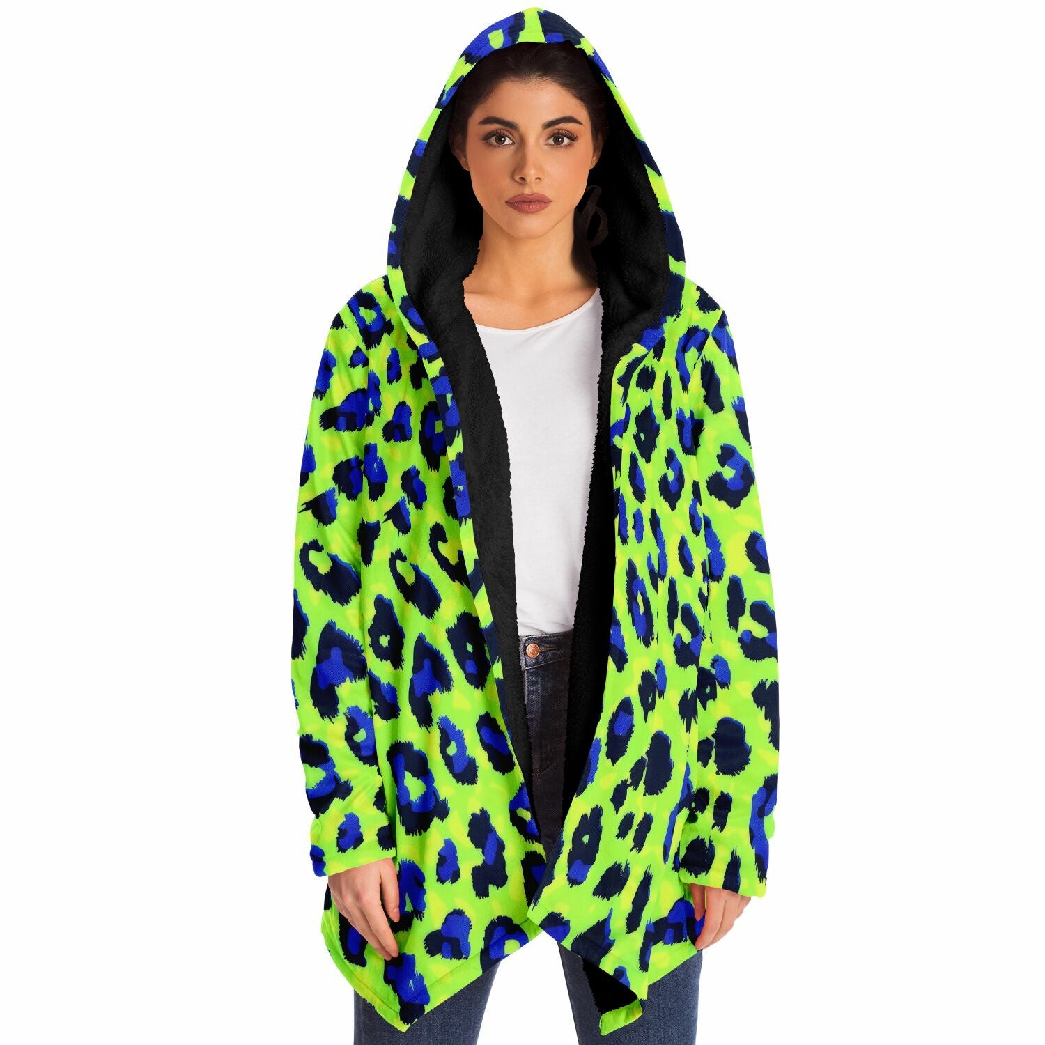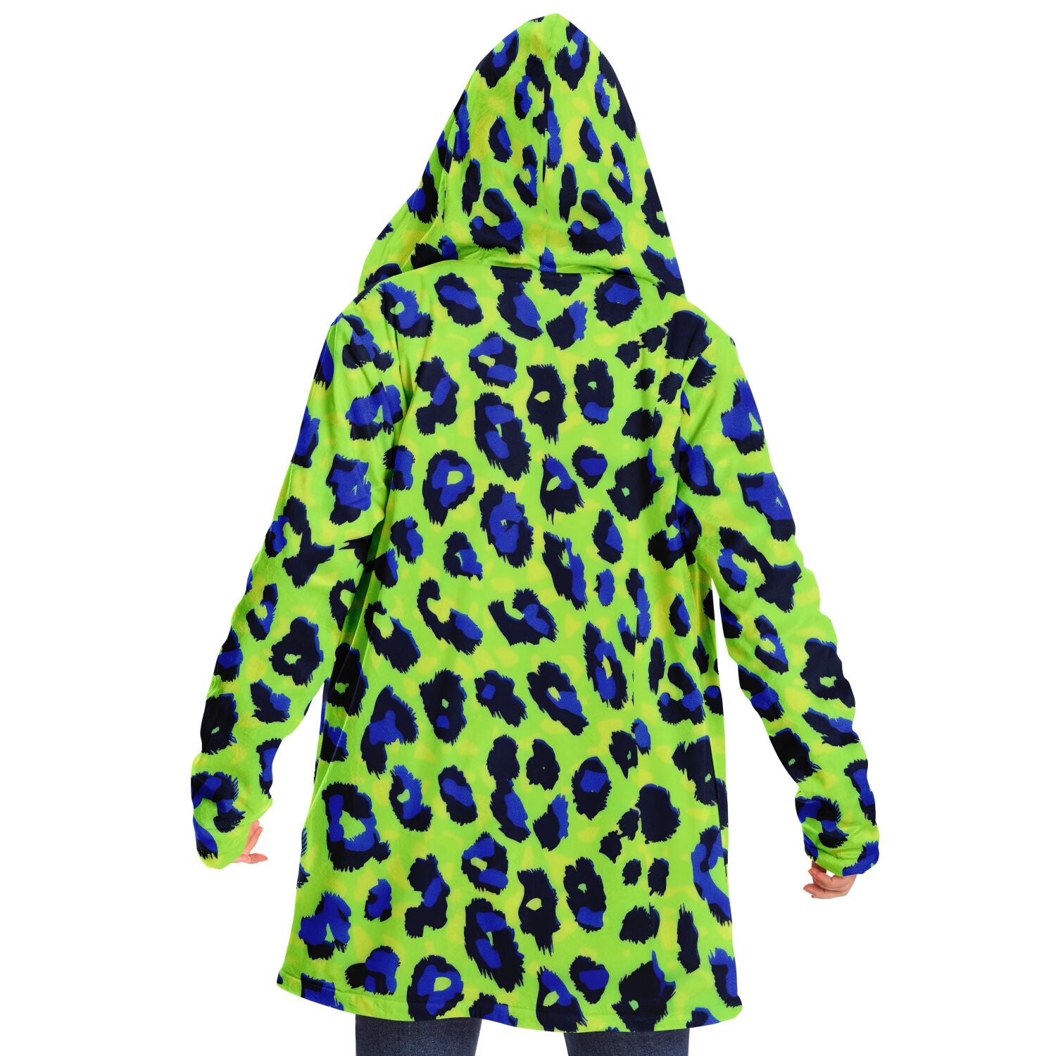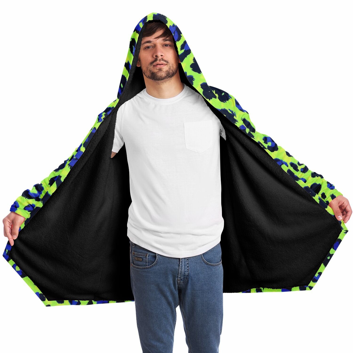 Boho Men Style Cloak – Neon Green Blue Abstract Animal Print Hooded Wrap