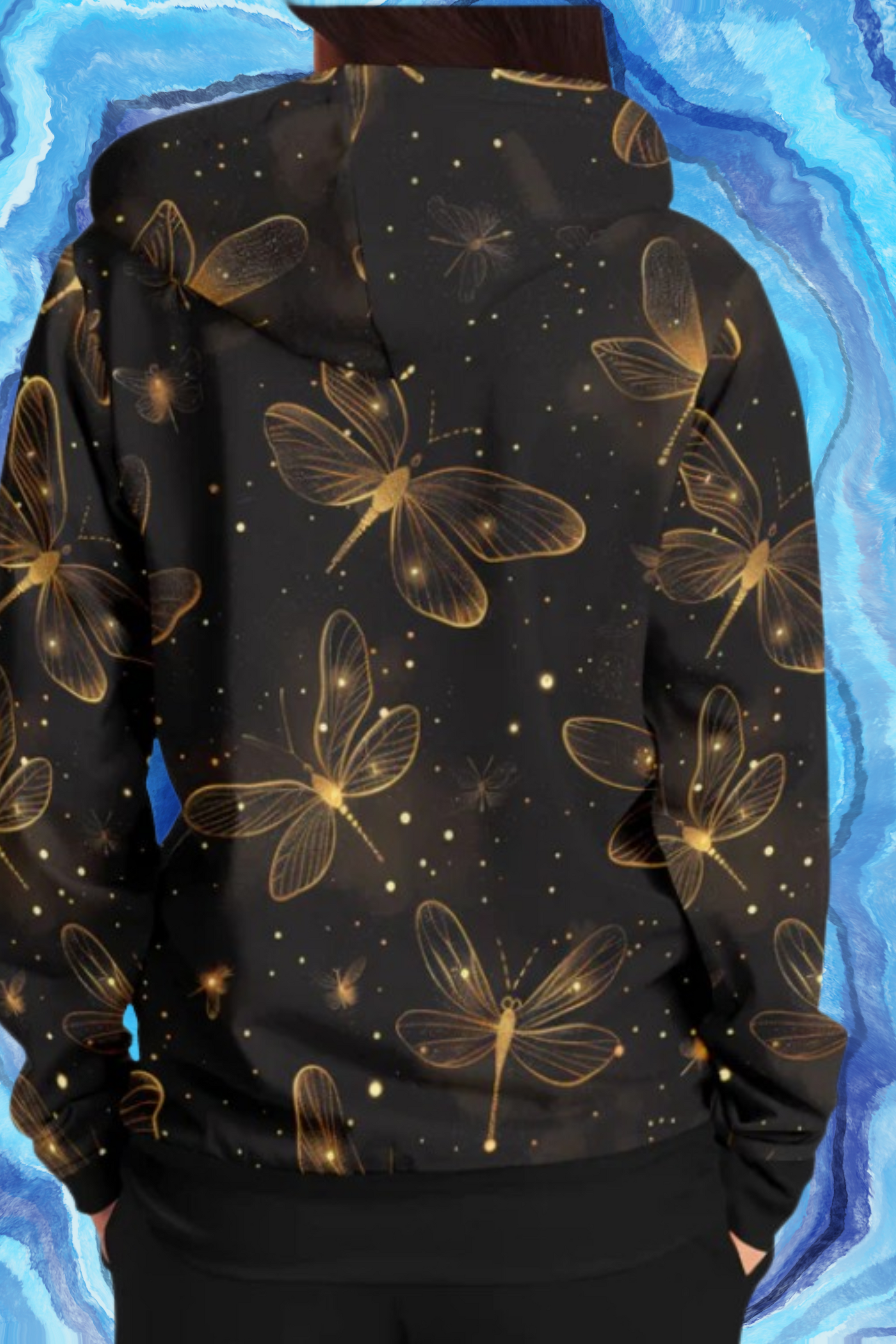 Golden Hoodie, Dragonfly Hoodie, Night Sky Hoodie, Glitter Print Hoodie, Magical Zip Hoodie, Ethereal Hoodie, Festival Zip Hoodie, Insect Print Hoodie, Shimmering Hoodie, Boho Style Hoodie