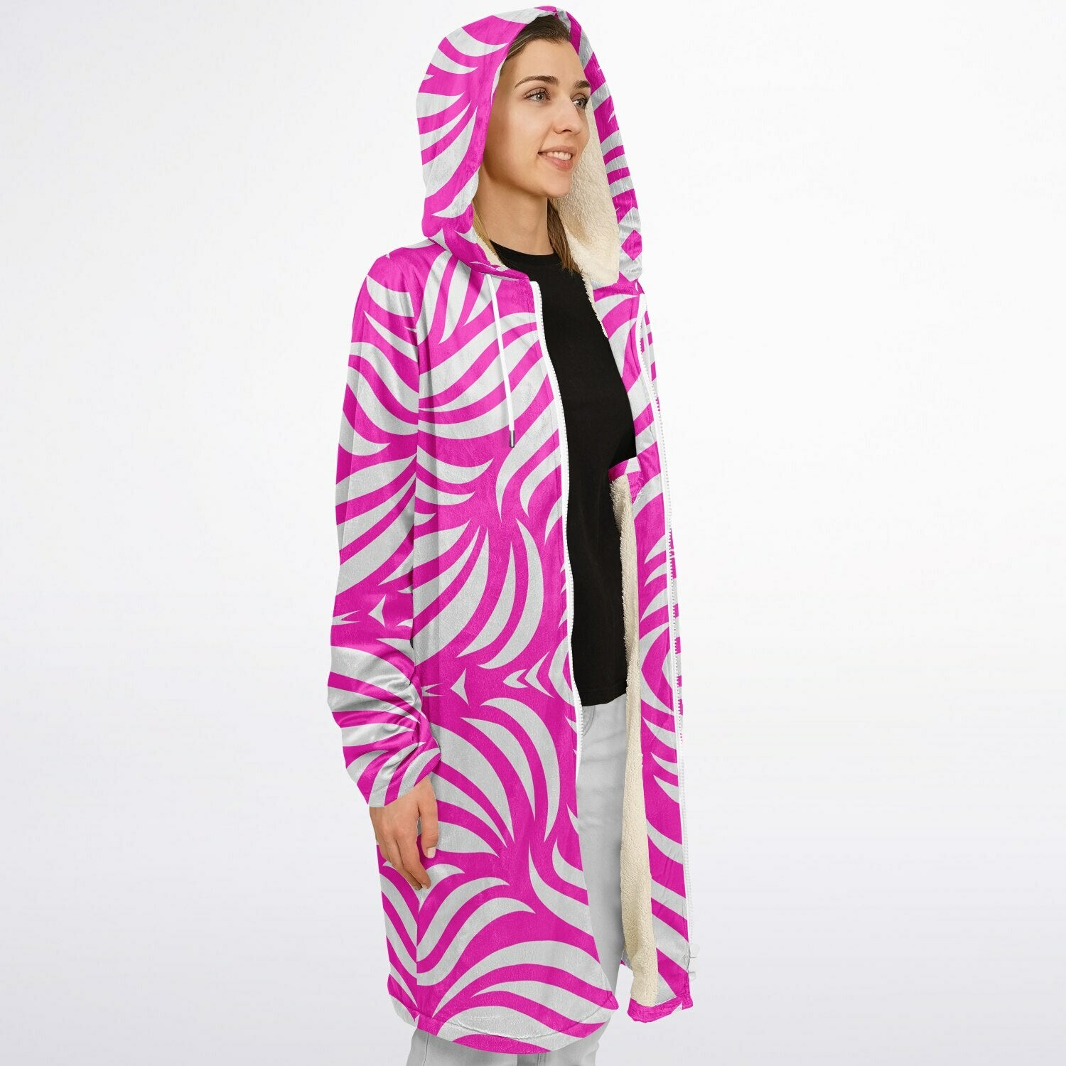 Hot Pink & White Boho Swirl Hooded Zipper Cloak Wrap | Festival Cloak with Abstract Boho Design