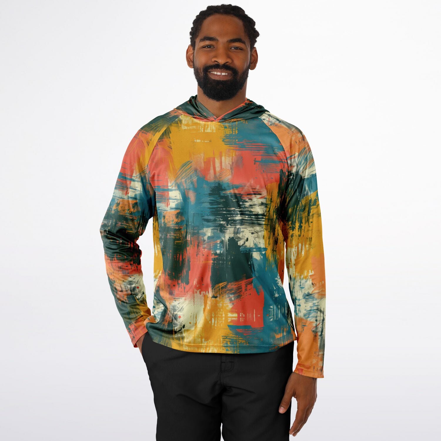 Why settle for boring when you can look like you just won a wrestling match with an art studio? This Men’s Long Sleeve Hooded Performance Shirt explodes with color splashes, brush strokes, and abstract vibes that scream “modern art… but make it athletic.” Perfect for workouts, festivals, or confusing strangers into asking, “Did you mean to wear that?” Yes, you did. Because nothing says performance like looking like a grunge Jackson Pollock masterpiece on the run.