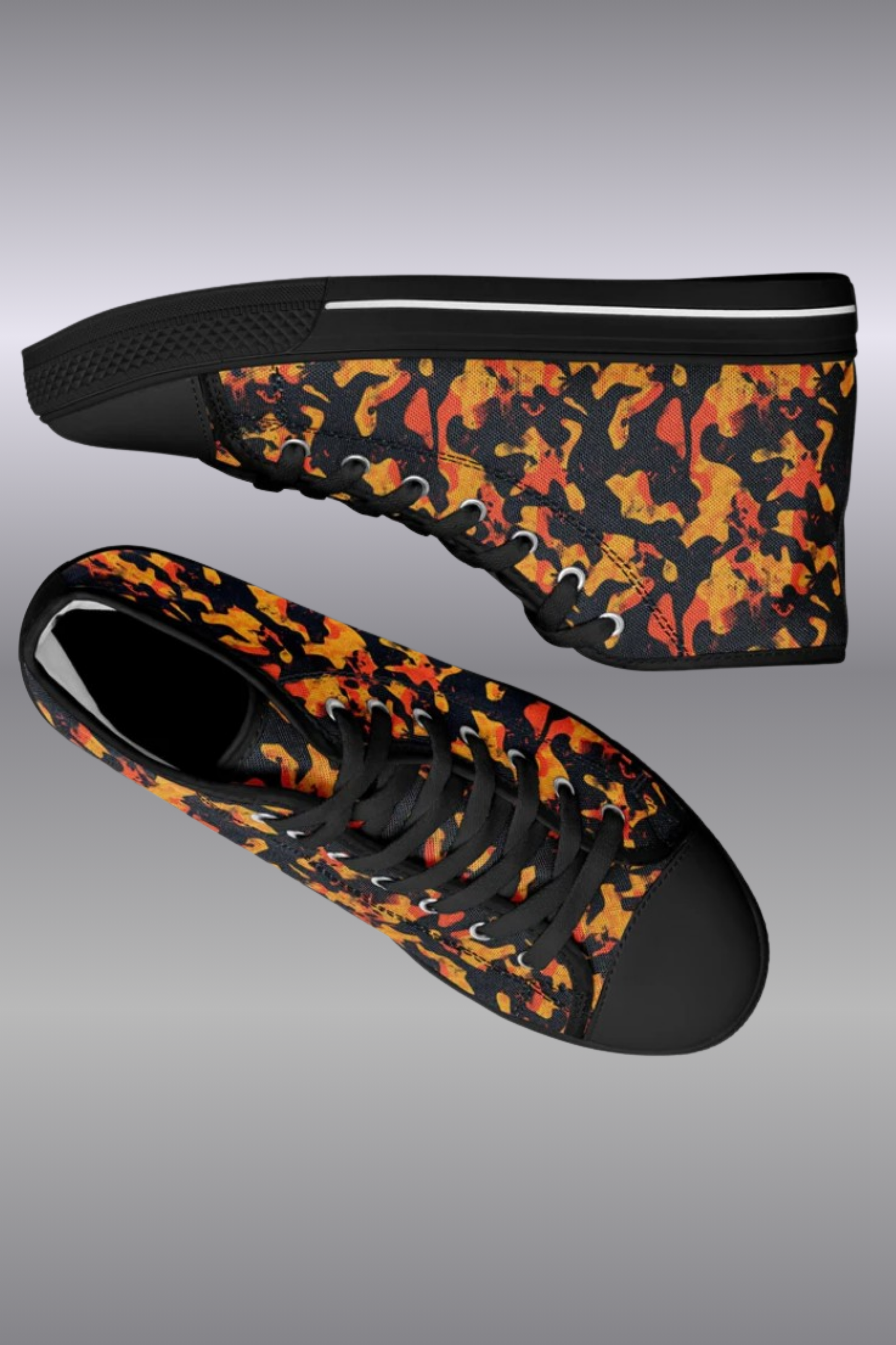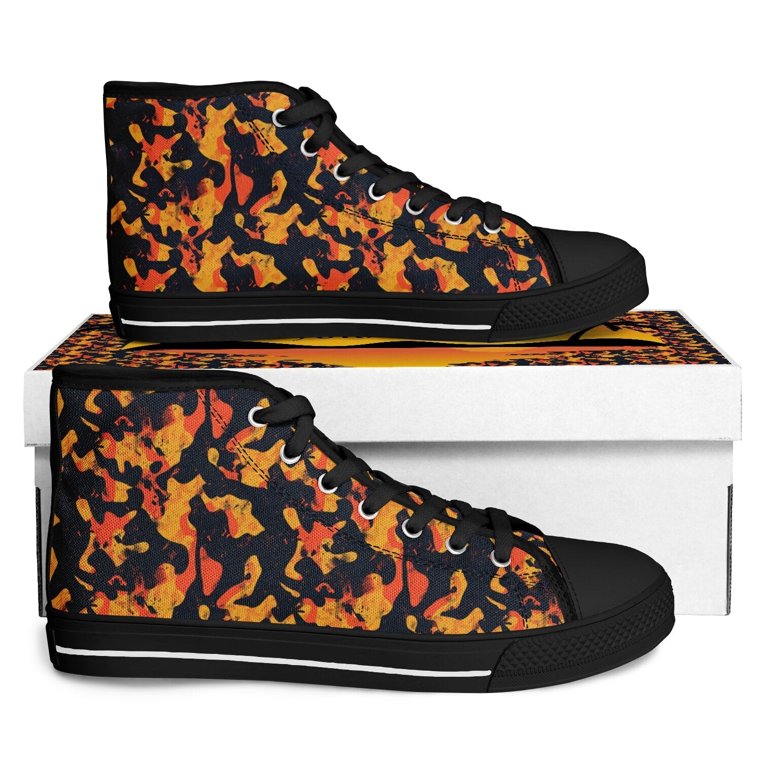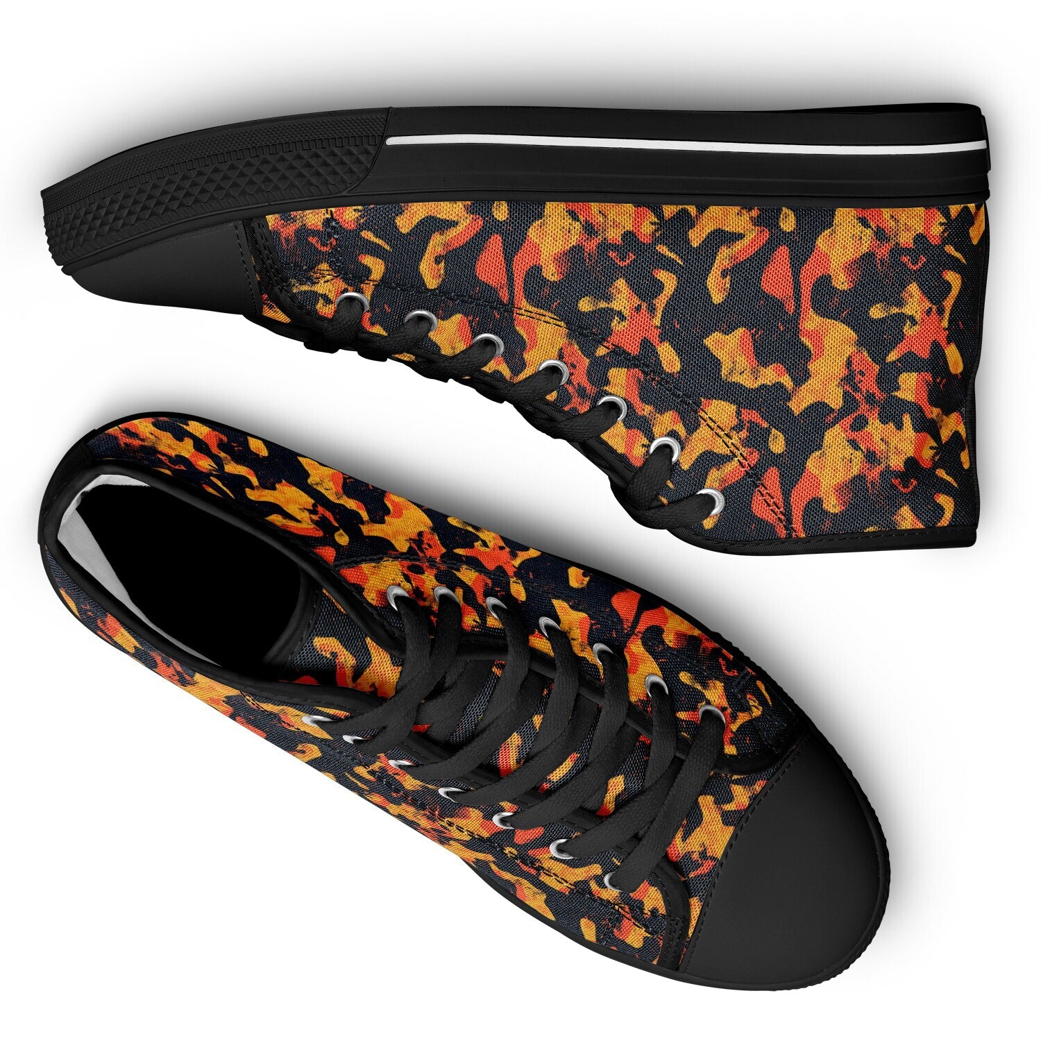 Make a bold statement with the Urban Peak High Top Shoes in a black and orange grunge design. Featuring a dynamic, distressed texture with abstract camouflage patterns, these high tops deliver the perfect mix of edgy streetwear style and everyday comfort. Ideal for urban fashion, casual outfits, and sneaker lovers who stand out. 🖤🧡