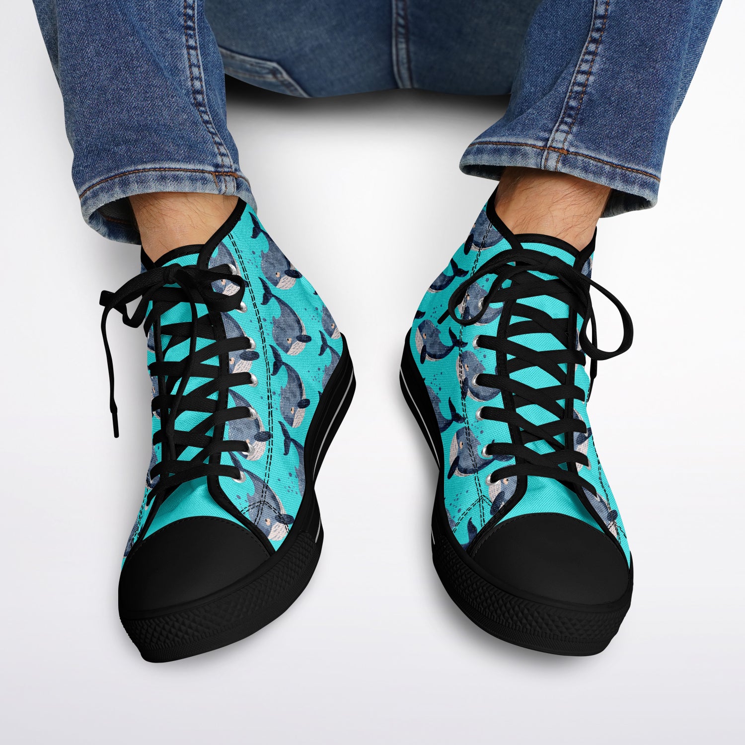 Make waves with the Urban Peak High Top Shoes featuring a whimsical whale design. With soft blue watercolor textures, sea-life details, and playful bubble patterns, these sneakers are as charming as a children’s book illustration. Perfect for ocean lovers, unique fashion fans, and anyone who adores cute, marine-inspired style. 🐋💙👟