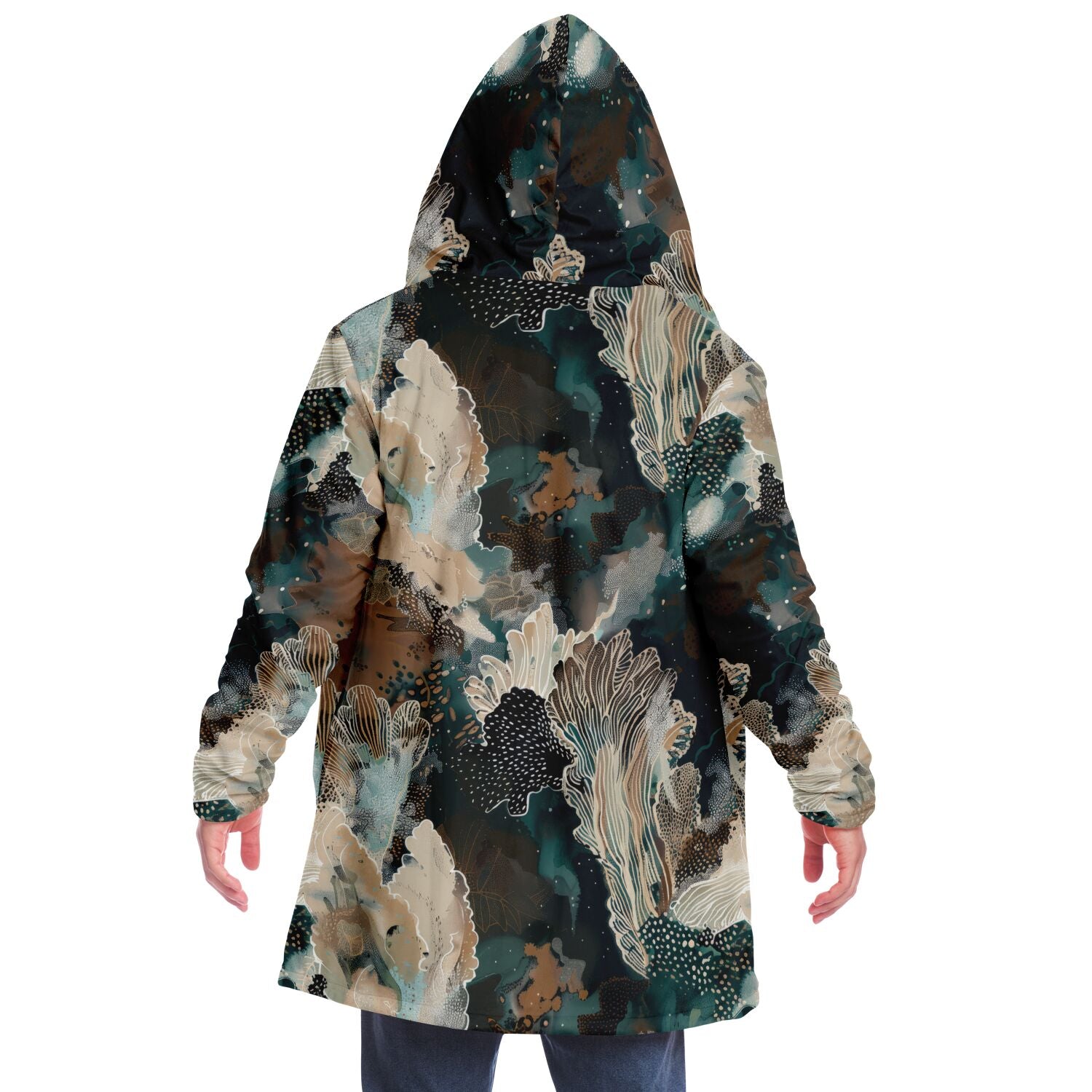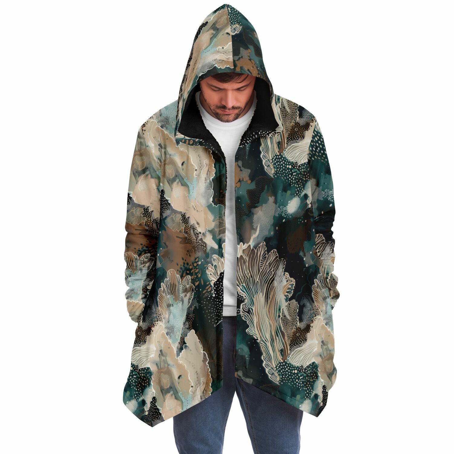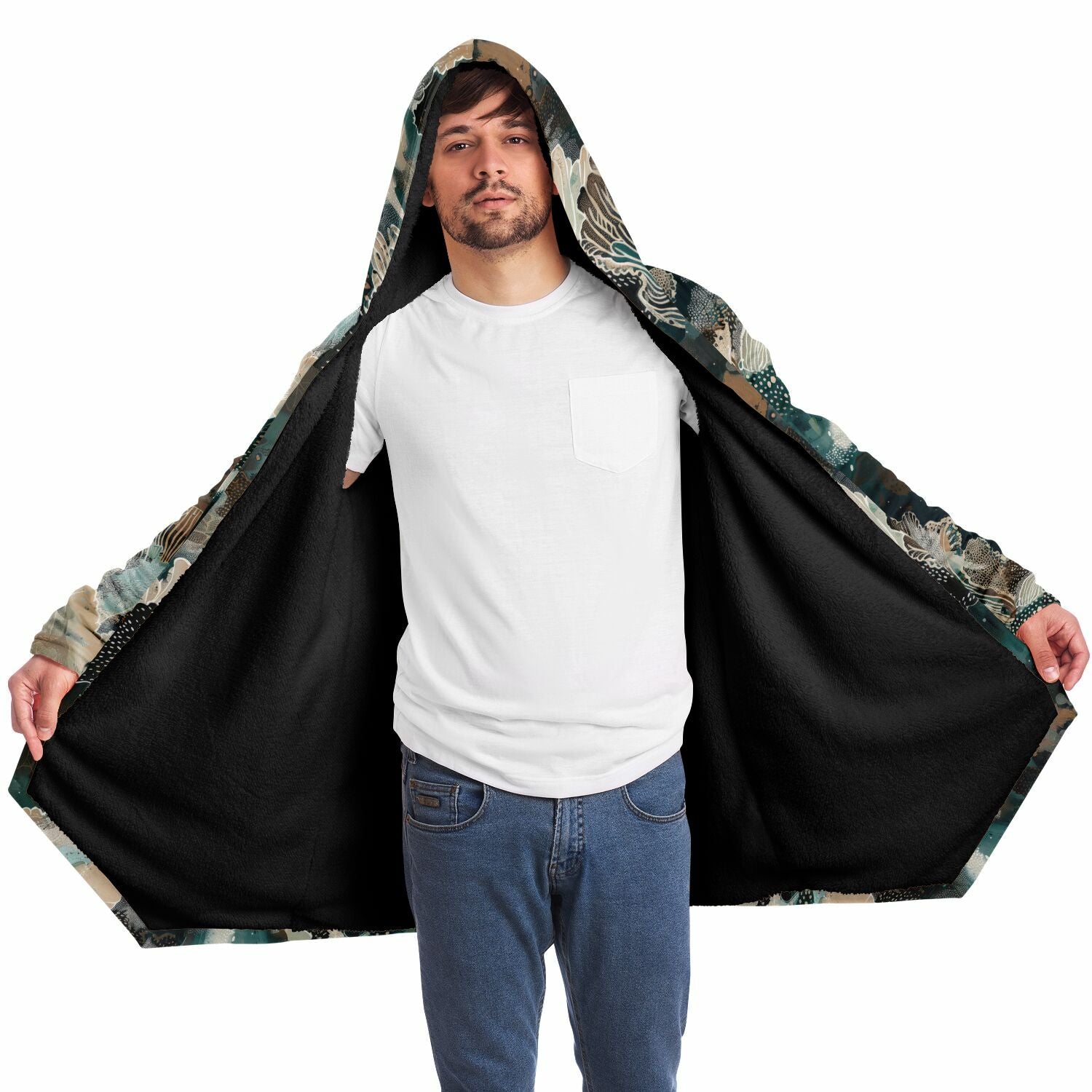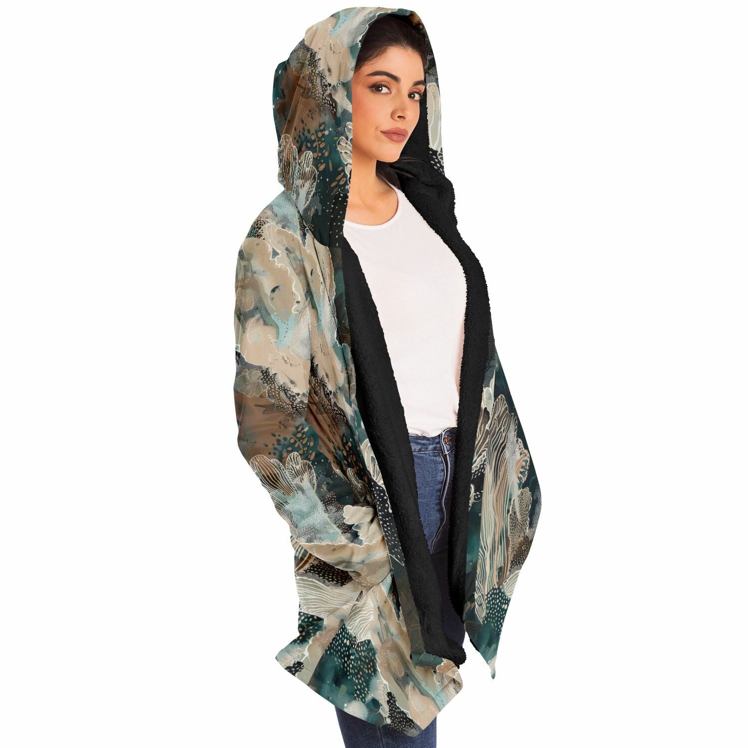 Warm Fall & Winter Hoodie Cloak | Teal Botanical & Abstract Coral Design