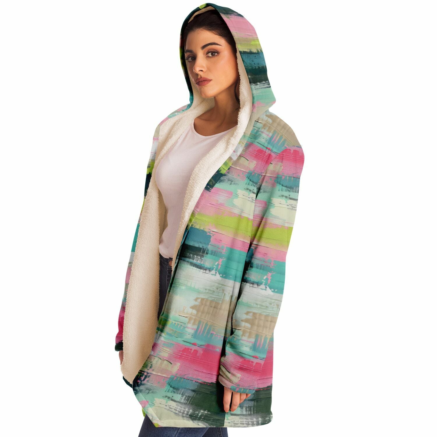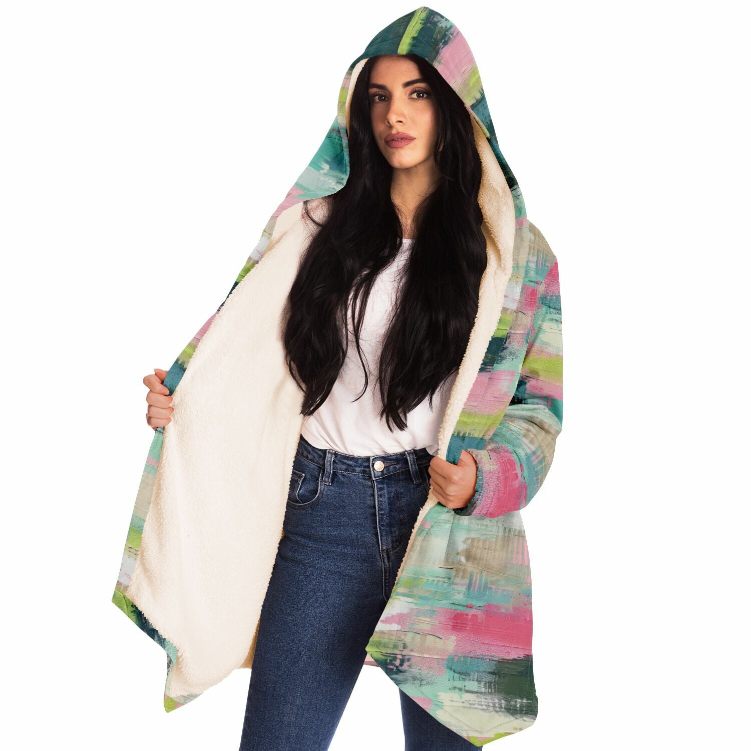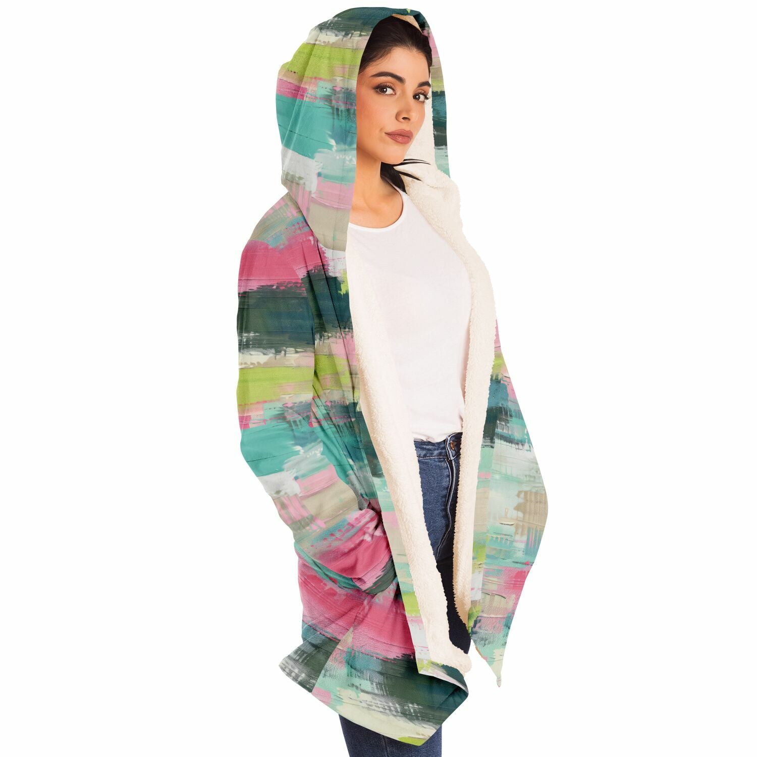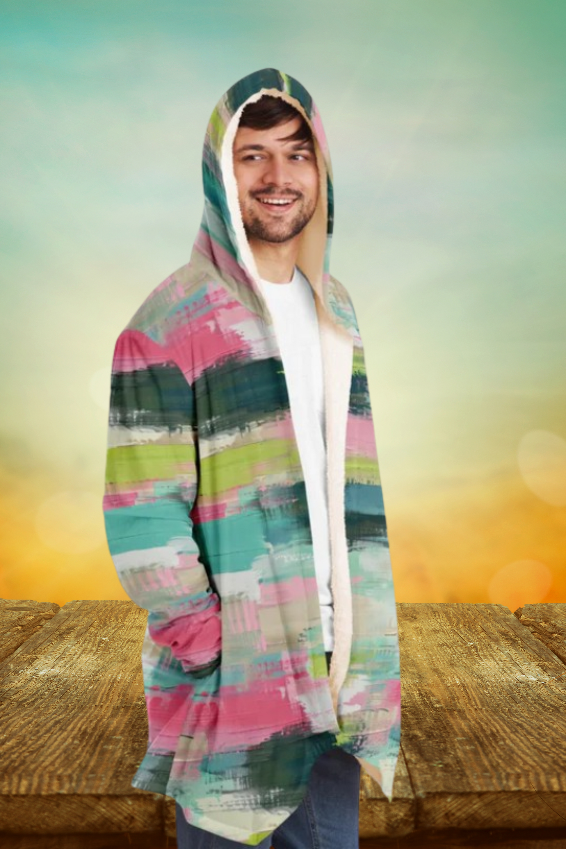 Tired of boring hoodies that say nothing but “I gave up”? 🎨 Meet the Microfleece Cloak — a masterpiece of vibrant brushstrokes, abstract chaos, and cozy fleece vibes. It’s like wrapping yourself in modern art, except no one’s yelling at you for touching the painting. 💛💗💚💙 Perfect for gallery hopping, coffee sipping, or just flexing on your Zoom calls.